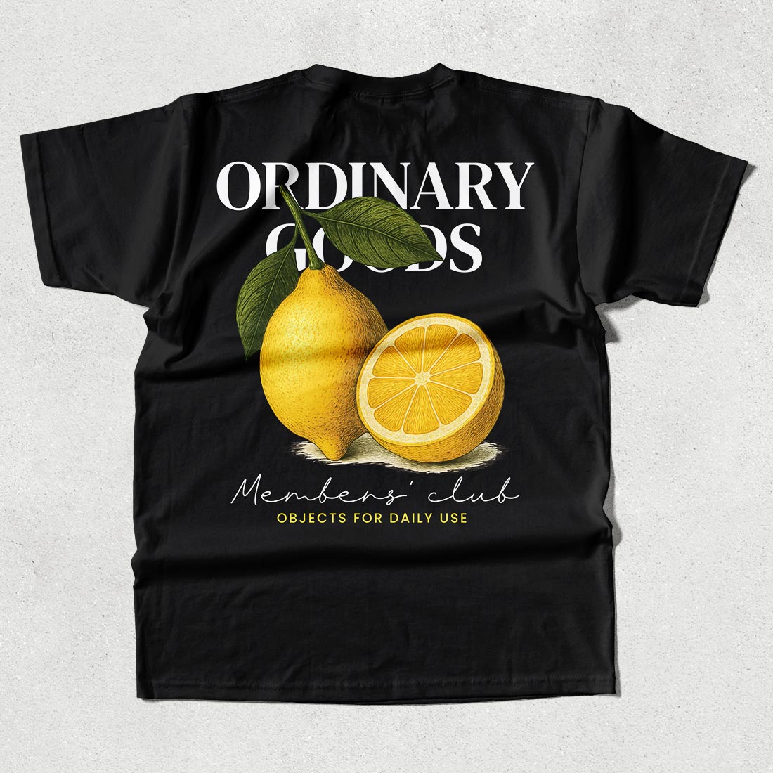 Our heavyweight boxy-fit black tee with a small front logo and a full-colour lemon illustration on the back. Designed for comfort, character, and daily wear.